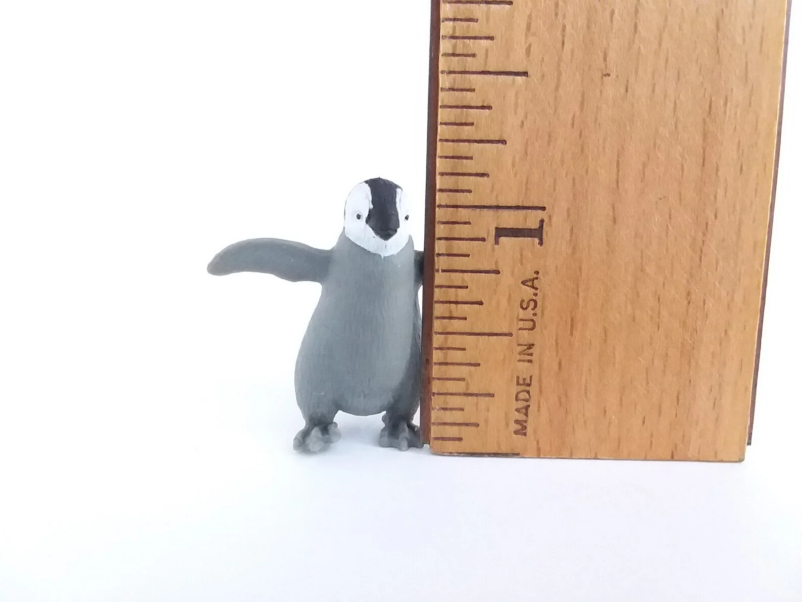 This mini 1" tall, hand painted, adorable mini Emperor Penguin chick will undoubtedly be the smallest penguin in your collection. Carry one in your pocket for good luck, glue them on to your windowsill or dashboard or make a cool diorama.Just don't put one in your cereal. Needless to say these are a choking hazard for small children.